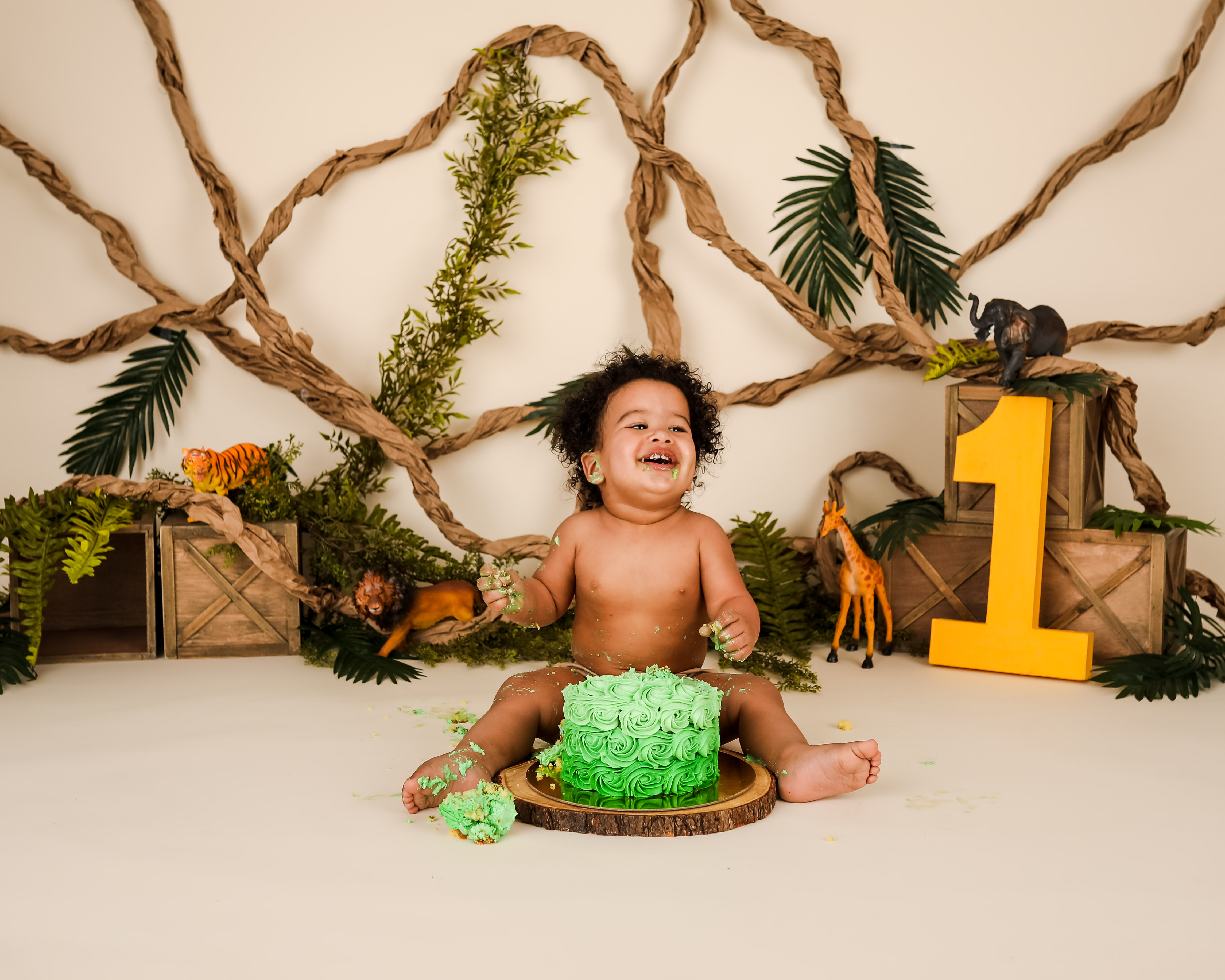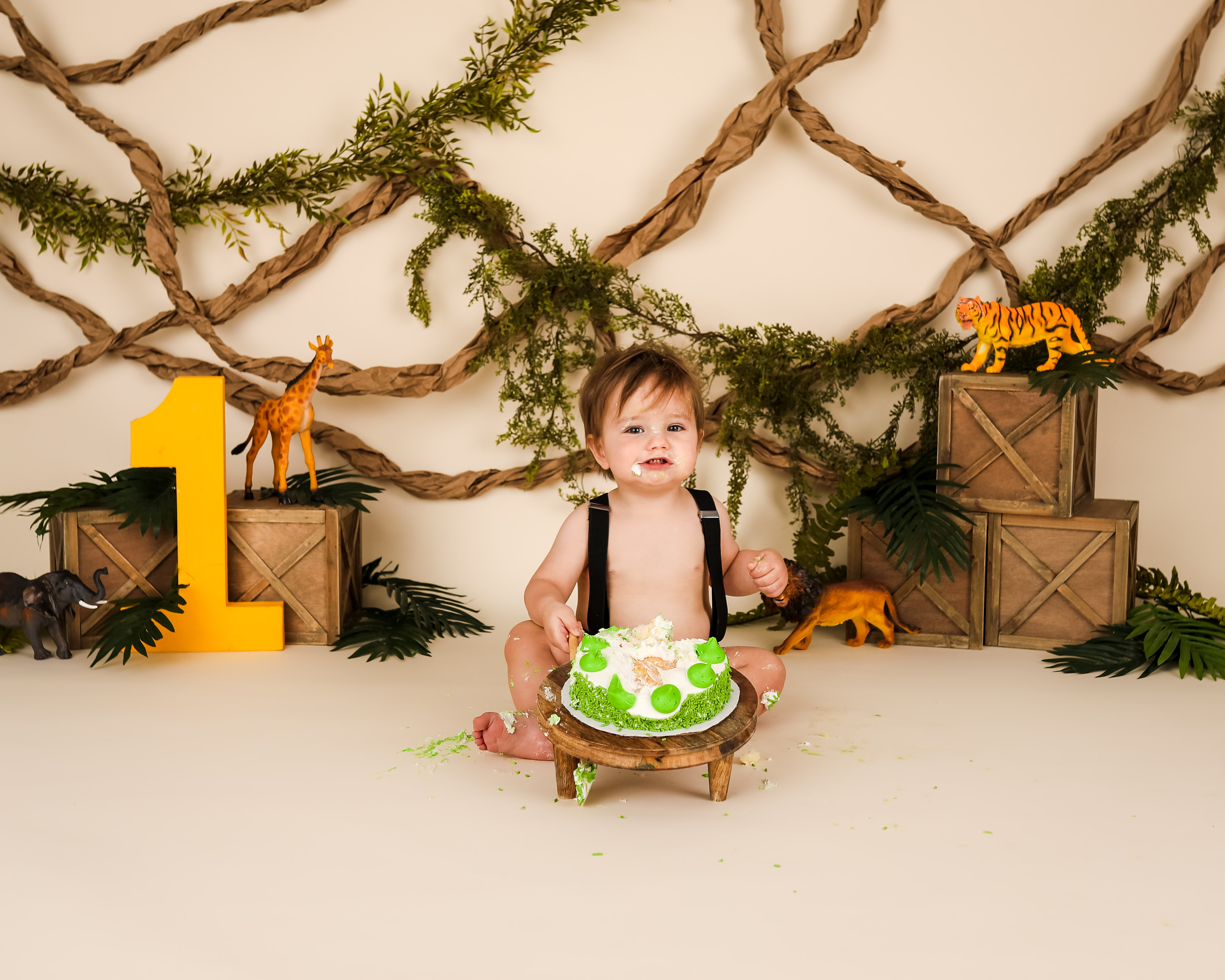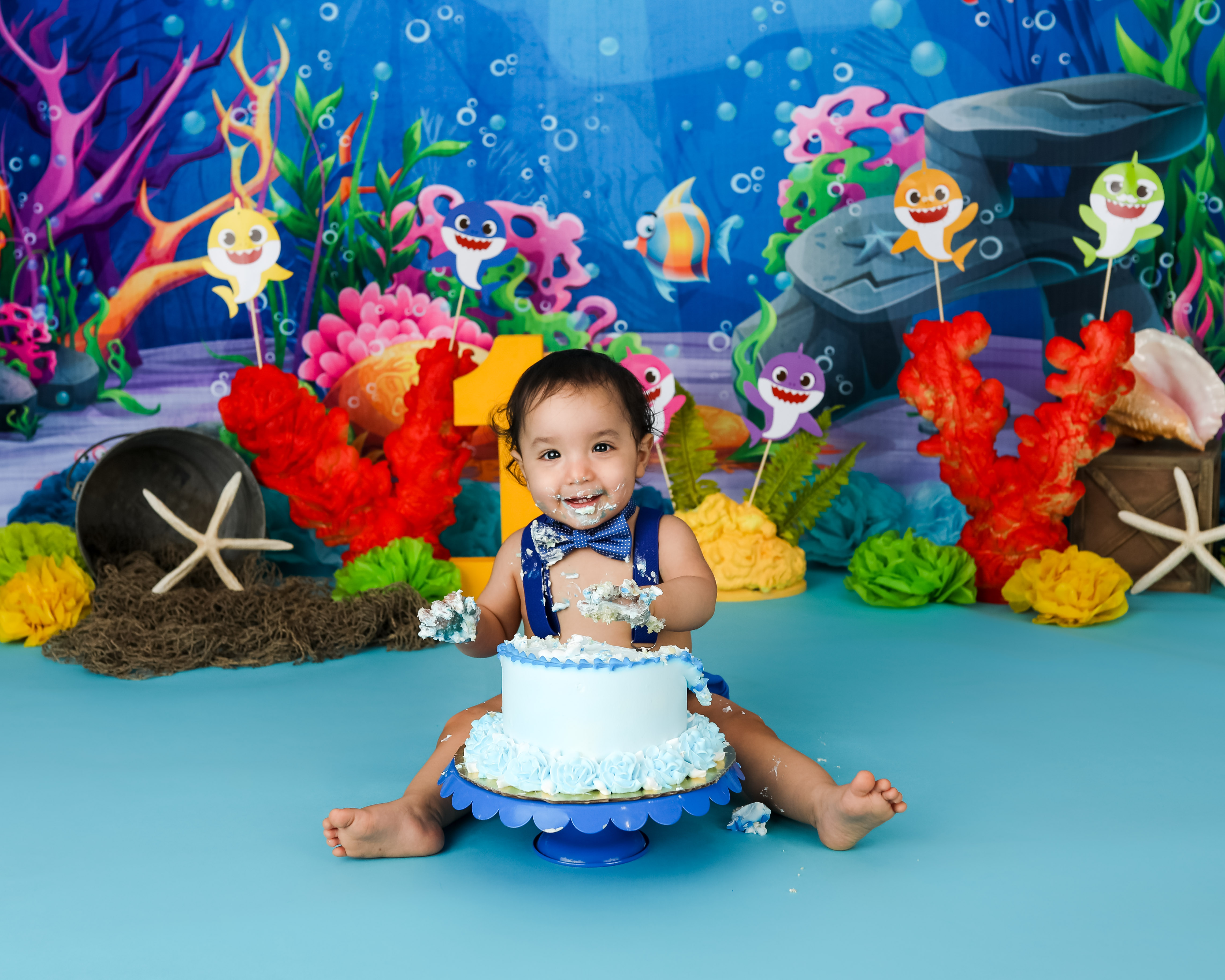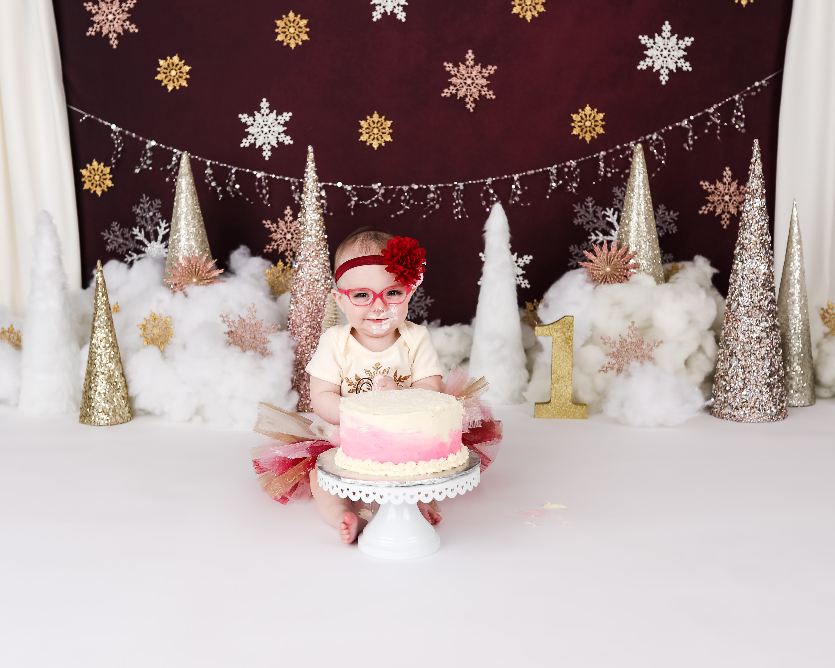 And 1 cake smash setup based on your theme. You do not need to provide any props unless we have discussed it prior to the session. Clients will provide any food that is consumed by the child for safety reasons. Cakes can be any size. I DO NOT recommend chocolate cake or red frosting. Please read through my prep guide before ordering the cake to be sure that it will be safe for baby.