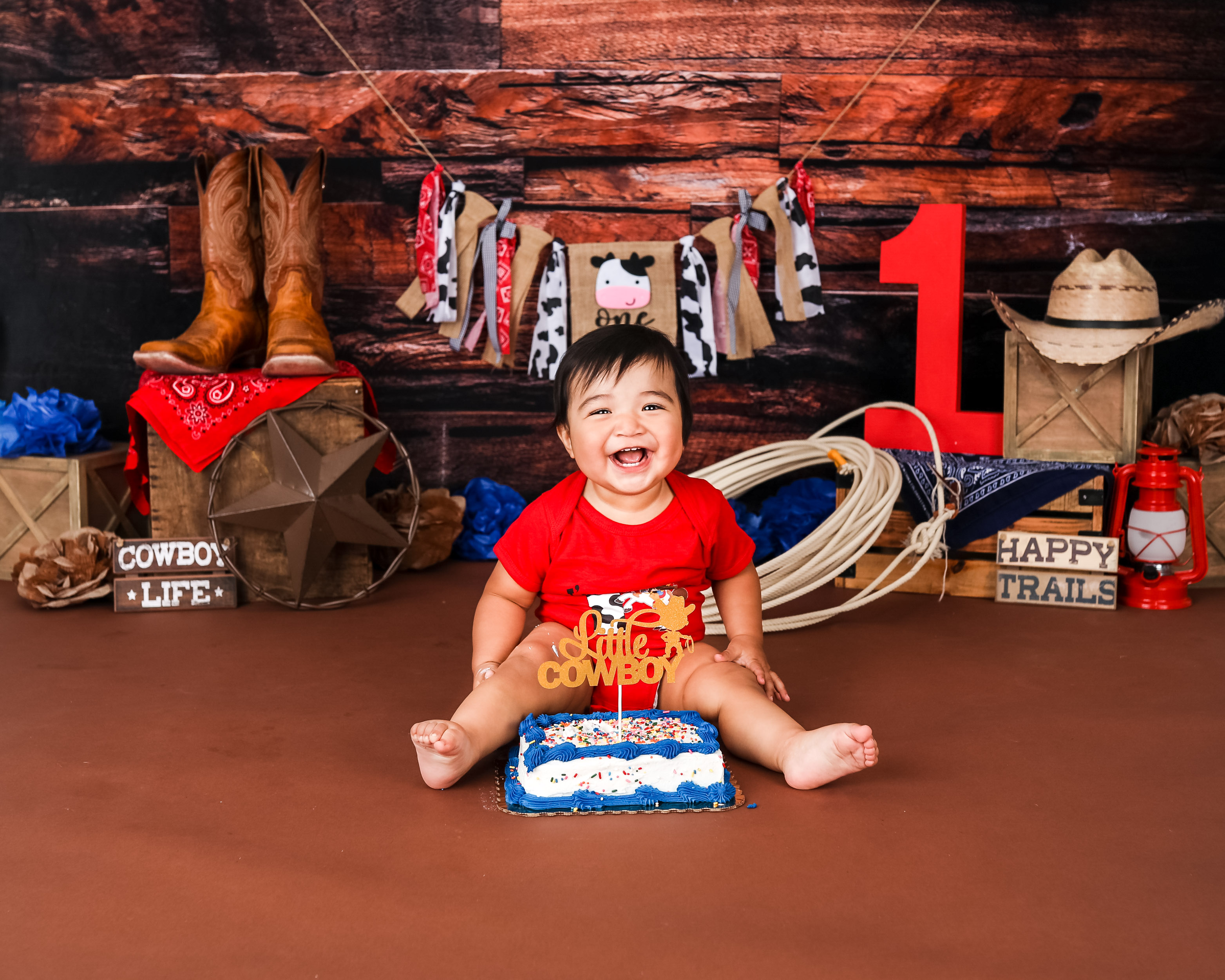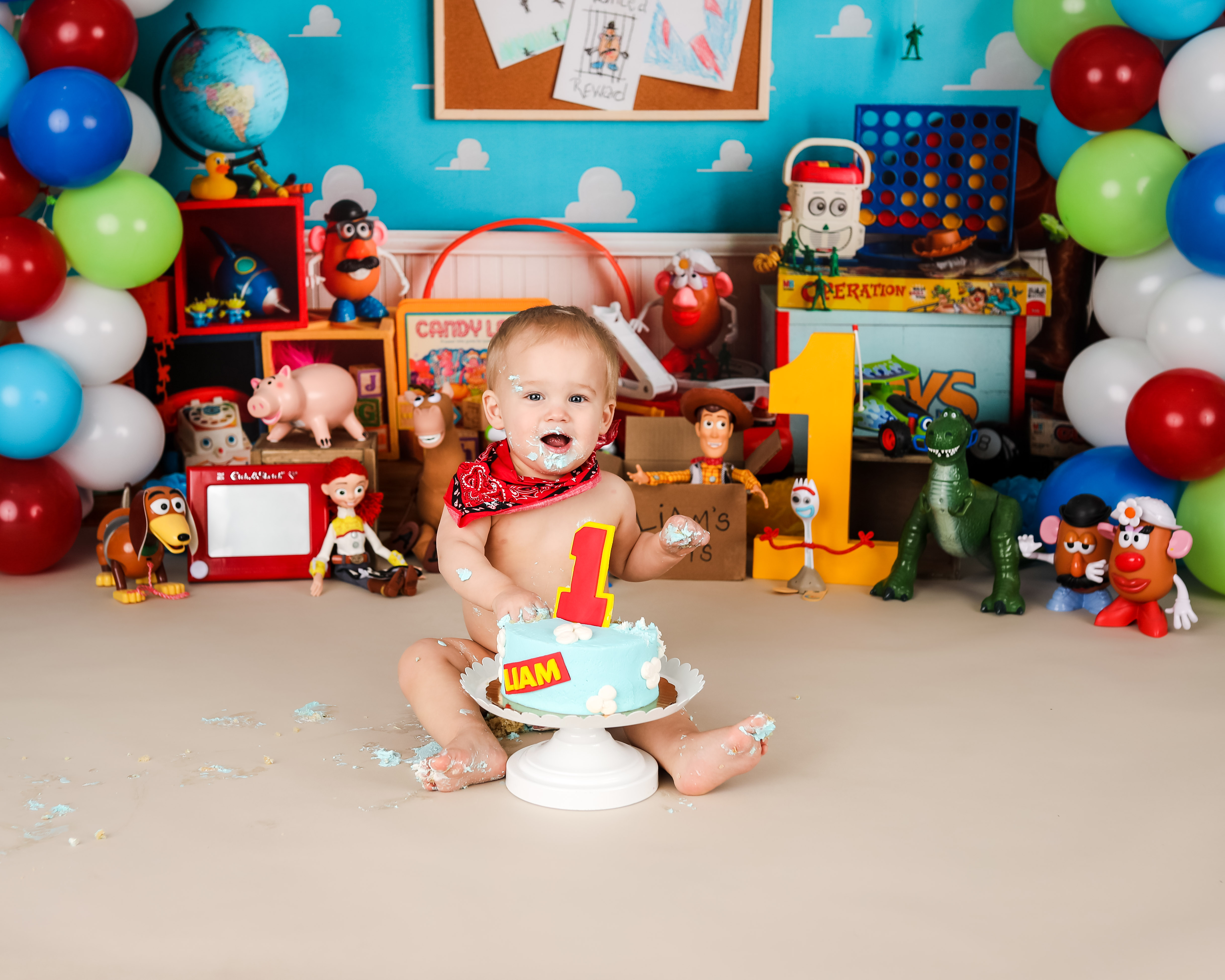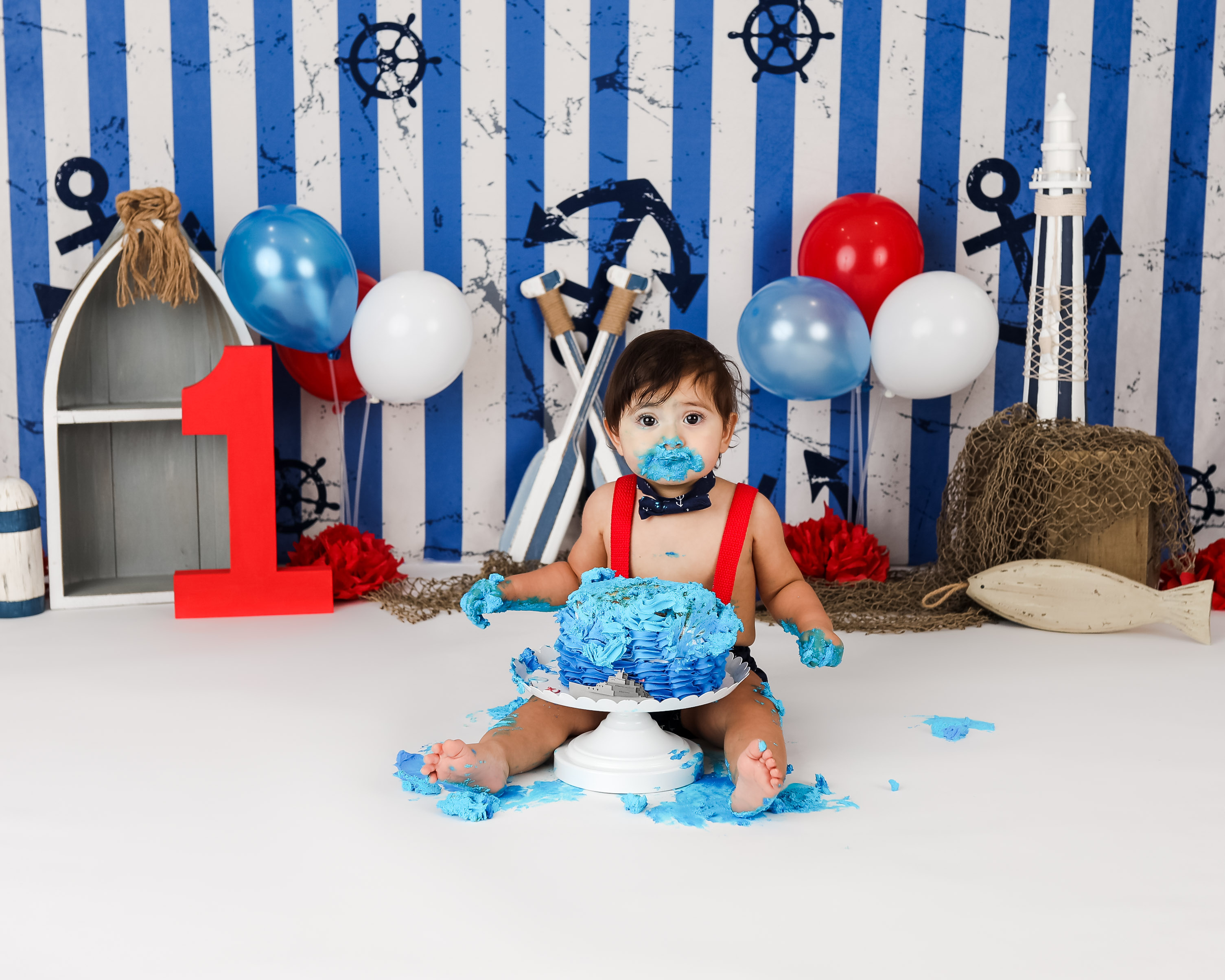 And 1 cake smash setup based on your theme. You do not need to provide any props unless we have discussed it prior to the session. Clients will provide any food that is consumed by the child for safety reasons. Cakes can be any size. I DO NOT recommend chocolate cake or red frosting. Please read through my prep guide before ordering the cake to be sure that it will be safe for baby.