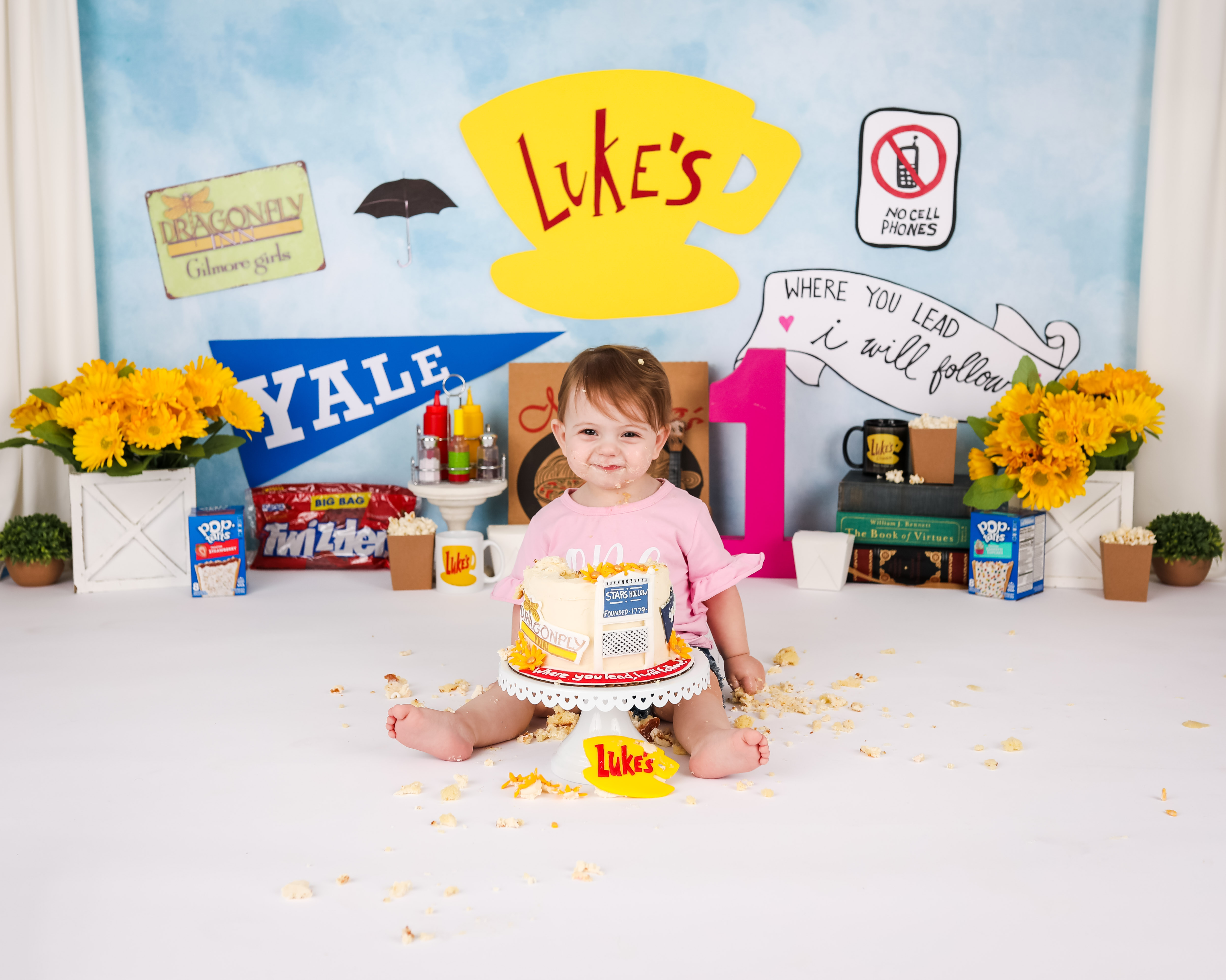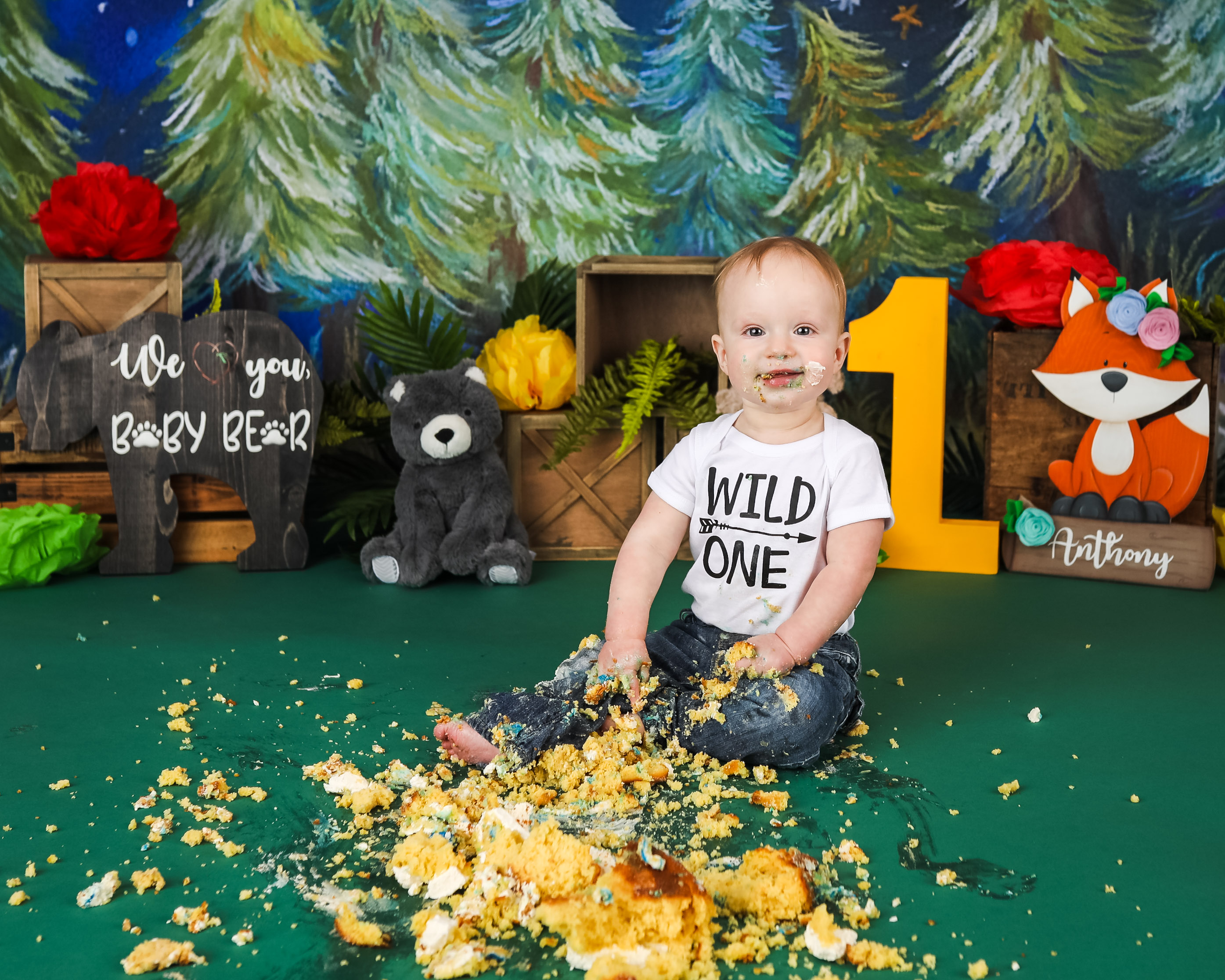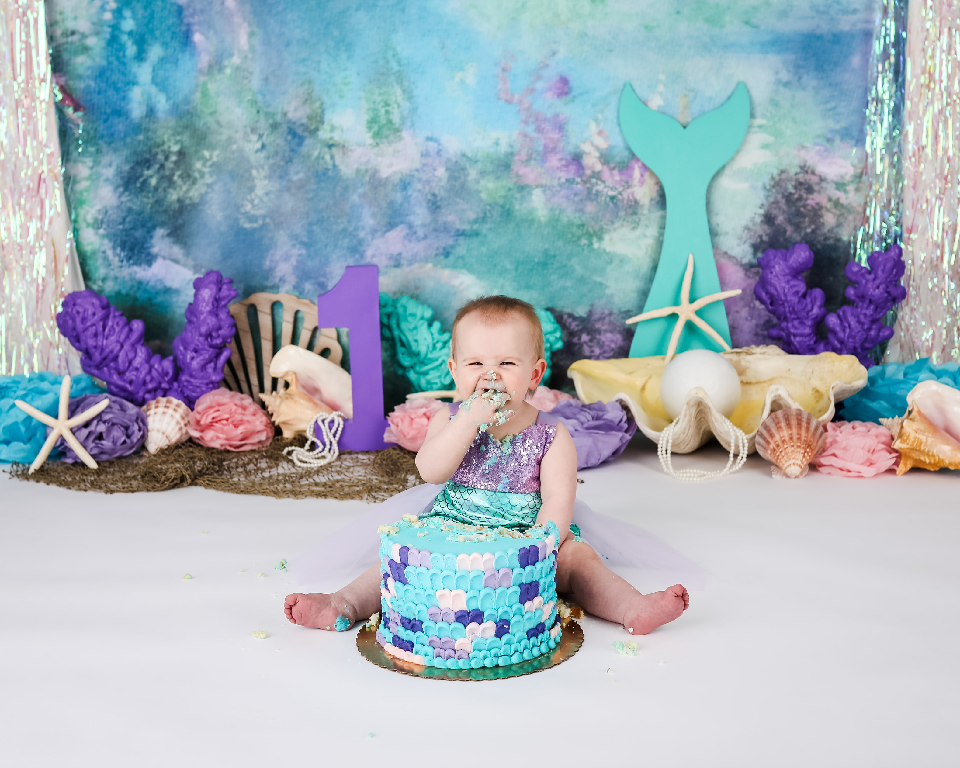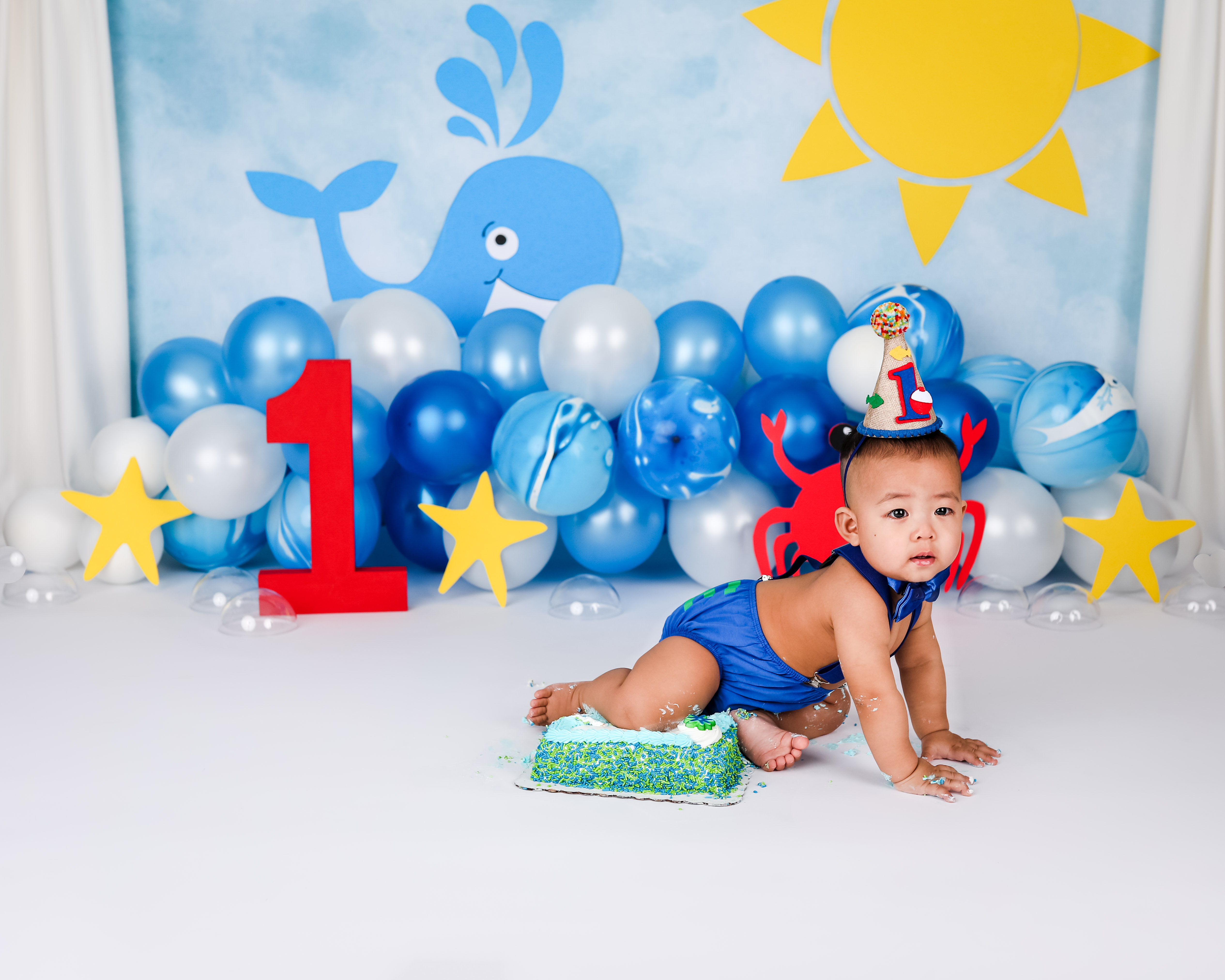 And 1 cake smash setup based on your theme. You do not need to provide any props unless we have discussed it prior to the session. Clients will provide any food that is consumed by the child for safety reasons. Cakes can be any size. I DO NOT recommend chocolate cake or red frosting. Please read through my prep guide before ordering the cake to be sure that it will be safe for baby.